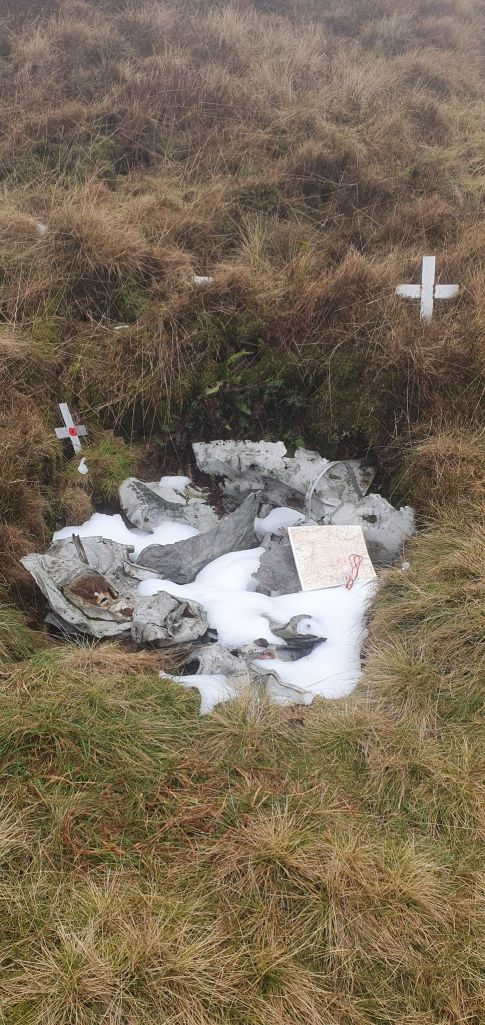 Locating one of many plane wrecks on the Kinder Scout plateau by map and compass.